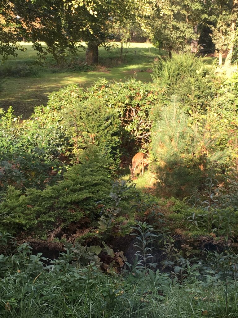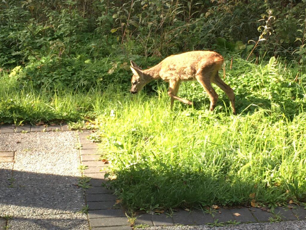 Zo maar kan zich een reetje laten zien in de achtertuin, die in alle rust wat te eten zoekt en zelfs het terras op durft. Totdat je de deur opendoet natuurlijk, want schuw zijn ze zeker.